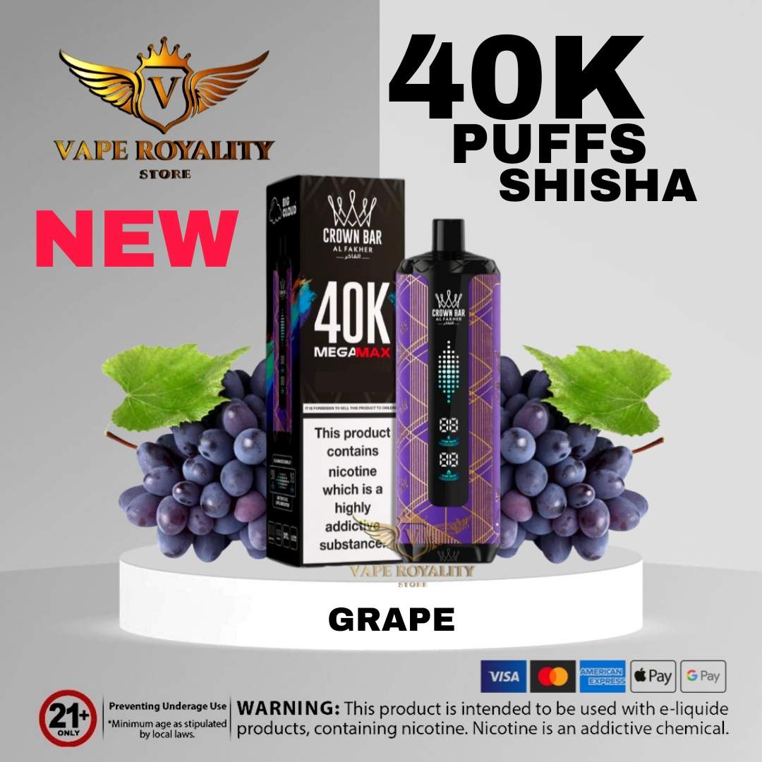 Vape Highster UAE is offering Al Fakher Crown Bar Mega Max 40000 Puffs Disposable Vape. Check out their site for pricing and promotions as well as the full flavor line.