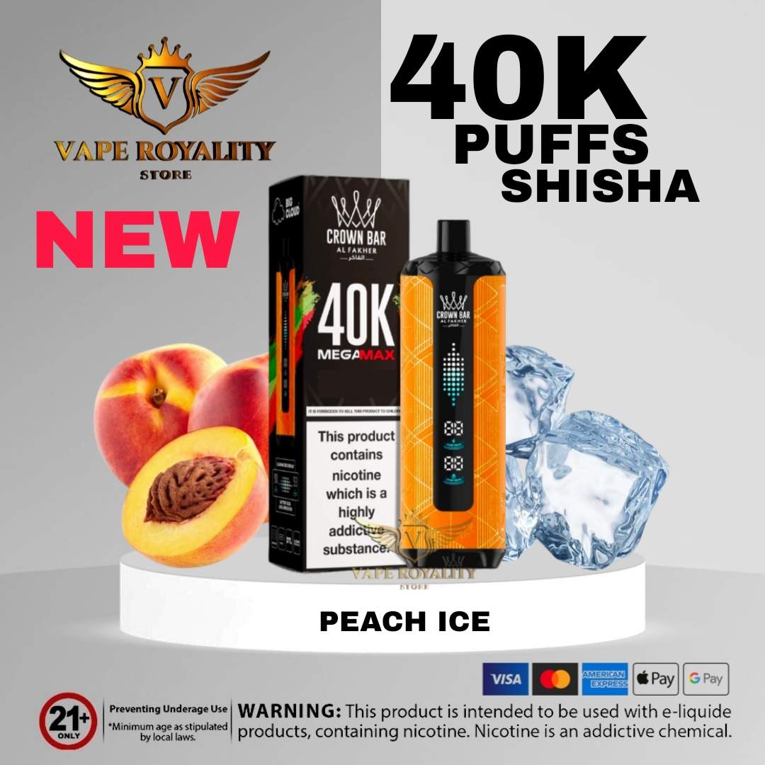 The Al Fakher Crown Bar Mega Max is a monumental improvement of disposable Vape technology giving you an astonishing 40,000 puffs from each device. This high-end vaporizer fuses Al Fakher’s world-famous flavor crafting with today’s newest vaping technology. The rechargeable style embodies a 850mAh integrated battery that works in conjunction with the large 20mL e-juice capacity, providing all day vaping.